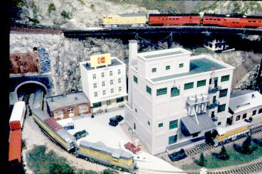 We switch coal cars on the coal siding and various goods at the distribution warehouse and the industrial spurs. A passenger train pauses at the station sidings in the southwest and northeast parts of the layout, and we switch fuel tankers at the fuel siding. The upper level passenger train stops at stations in each of its loops, and passengers can make connections by walking down long stairways to train stations on the lower level. Trolley passengers can make connections at a waiting platform with steps from the middle (Plateau City) level to a lower level station. All switching operations need and use delayed action uncoupling, since all require trains to uncouple cars and then back them into sidings or spurs and leave them there.