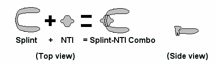 3. Splint-NTI Combo (not worn by anyone until someone makes one). They make mouth splints for the lower back teeth and NTIs for the lower front teeth, so take the two items and combine them and you have a splint-NTI combo. I assume the best way to get the job done is to get a patient’s teeth molds taken like you normally would for a lower mouth splint, but then also get the mold done for the lower NTI, and utilize both molds in creating this splint-NTI combo.