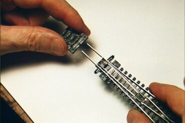 Using Tortoises For Frog Power Switching The good news is that Tortoises can do frog power switching for up to 1 amp, which means any normal N-scale non-DCC layout will do fine. The bad news is that if you have DCC, you probably need to get an extra relay (around $14 from Circuitron) because your frog current will exceed 1 amp. This means the Tortoise's built-in accessory switches will still help, but the current load must be shouldered by the relay. If you have lots of turnouts and use DCC, this could be a serious budgetary issue. Track Cleaning In spite of having made your points' cleanliness irrelevant to train stalling, you'll still want to run a track cleaner car, wipe the track with cleaner periodically, and/or keep your house well filtered and dust free (we use an electrostatic air cleaner on our furnace). Things will run better and you'll have more fun—besides, who wants to scrape dirt off loco wheels when they begin lurching when it would have been so much easier to keep it off the track so it wouldn't get on the loco in the first place? |