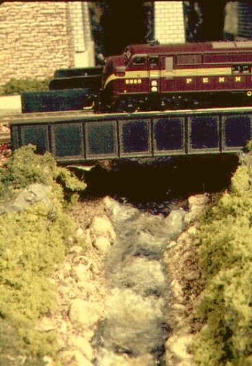Painting and Sealing With most methods, use either Hydrocal or hardboard under water areas. Then apply a basic sealer so that the you won't get leaks. Even though E-Z water and EnviroTex seem very thick when mixed, they will flow like water through any small hole in your base. Under E-Z Water seal the area with Flex Paste. Flex Paste works well under EnviroTex, too. And it gives you a nice white base to start with. Next paint darker colors (black or dark gray) near the center and lighter ones (tan or gray) near the shores. Add rocks and turf—or even sunken objects like boats, barrels or branches, then seal the whole area with clear acrylic sealer (spray) or concentrated matte medium. This acrylic spray is important to preclude as many air bubbles as possible, especially if you use turf. Once the sealer dries, you're ready to pour EnviroTex or E-Z Water. If the water is to be opaque, no lakebed/streambed features like paint or turf or underwater boulders are needed, but stumps or rocks that protrude from the water are. If the water would look better with color in it, stir in a very small amount and mix it in prior to painting/pouring, following the instructions that came with your water modeling material. Color Mixing Suggestions Our blue mix for streams and lakes is usually seven drops of EnviroTex transparent blue dye to about one teaspoon of Pollyterrain Gloss. Our color formula for oceans: Use Badger Opaque Airbrush Acrylics as follows: four drops Prussian blue (#7-30), one drop Chrome Oxide Green (#7-40), one drop (Amber #7-22). Use one drop of this mix per ounce of mixed EnviroTex. First mix that drop into the first part of the two part resin. This way with one part of the resin colored you can see when the two parts are well homogenized. Tip: Be sure to put some newspaper on the floor to catch drips—even if you feel you've perfectly sealed the area. You'll be surprised at just how unlikely an achievement this thing called "perfection" is. Only EnviroTex, casting resin, real water, and E-Z water require meticulous sealing prior to pouring. Polyterrain Gel and Gloss and the other methods only require paint and other objects on the bottom for good effects. |