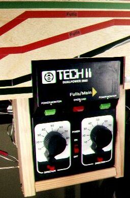 How To Run a Multi-Throttle Layout After months of experimentation, I developed several rules for train operation which work well for me. I feel confident they'll also work well for you: • Rule 1: Use the right throttle knobs on the Dualpower for powering nearby mainline track, and use the left throttle knobs for powering nearby sidings, spurs, branch lines and automatic operations like subways or trolleys. Locate the mainline section throttles approximately midway between their section boundaries. Sections are never very long. • Rule 2: All throttles are normally ON. This includes mainline throttles as well as nonmainline throttles, although automatic sections may have throttles on or off according to whim, and special sections unconnected to mainline or siding tracks will be on only when being used. This means that the only time a mainline or siding throttle would be off is if someone is using that throttle and has his train stopped. (Incidentally, I suggest that if you use signals, set them up to reflect this OFF position like so: Use a two-lamp block signal at all block boundaries with an always-on yellow or amber lamp on the bottom connected to lighting power and a green lamp on the top that's connected to the next block's track power. This will mean that engineers will normally see both green and amber lamps on, but if only an amber lamp is on, it means the next block is occupied by an engineer with either a stopped or a very slow-moving loco.) • Rule 3: All throttles are set to speeds deemed best for that section of track. You can stick a little red Dymo tape arrow (or other marker) onto each throttle dial to guide the next user back to the correct setting (which he's responsible to reset before leaving that section) instantly and at any time, since it will sometimes be altered during train running, although, more often than not, it won't. The ramifications of this are several: (a) not only are you spared having to toggle switches (except for those you may use for such things as on/off switches for yard blocks and staging area blocks, and except for turnout toggles), you are also spared having to turn throttle dials much for most mainline running; (b) each area of your layout will be automatically preset to run trains at the best possible speed without any needed intervention from you—speed-ups for country and braking for towns are all set automatically, although you still need to stop at stations; and (c) you do not need to plug/unplug throttles or anything else, but what's more, you don't need to hasten to get to the next throttle as you walk around your layout, as all settings are already optimal and there are adequate numbers of throttles so that they are not that far apart. Moving a throttle knob, therefore, isn't really about running trains in an area, but about turning them off for stopping, slowing them down for turning off the mainline at a turnout, or yielding the right-of-way at a track crossing. (Note: Hardcore model railroad hobbyists will have already perceived a couple of obvious weaknesses of the one-size-fits-all speed settings. They'll be discussed as the last item in the section after next.) |