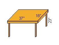give you neck and back strain—virtually forcing you into bad postures. This was a problem for me, personally, but I found that a few scrap boards that weren't busy doing anything better were all it took to solve the problem. I cut a piece of ¼-inch plywood 37 inches by 18 inches, sawed two 2-by-4 pieces 36 inches long and two more 14 inches long, and found some 2-by-2s and sawed four 22 ¾-inch legs. Vary this according to your height and the height of the stand, remembering that looking down somewhat isn't stressful but looking down sharply is. I used countersunk 3-inch wood screws quite liberally—one wants stability when one has an expensive synthesizer to consider. I screwed together the top framework before I screwed on the legs. (Hint: screw the legs on from both directions for extra strength but don't drill or screw into your own screws.) Then I screwed down the top, which required smaller and thinner screws. Small nails would have sufficed, in retrospect. The top overhangs the frame boards by half an inch in all directions. |